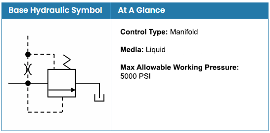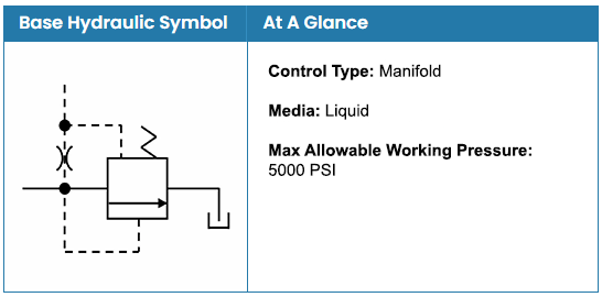 The HSLR is a low-flow, adjustable relief valve used for pilot control of relief, pressure-reducing, sequence or any other type of pressure-controlled valve.